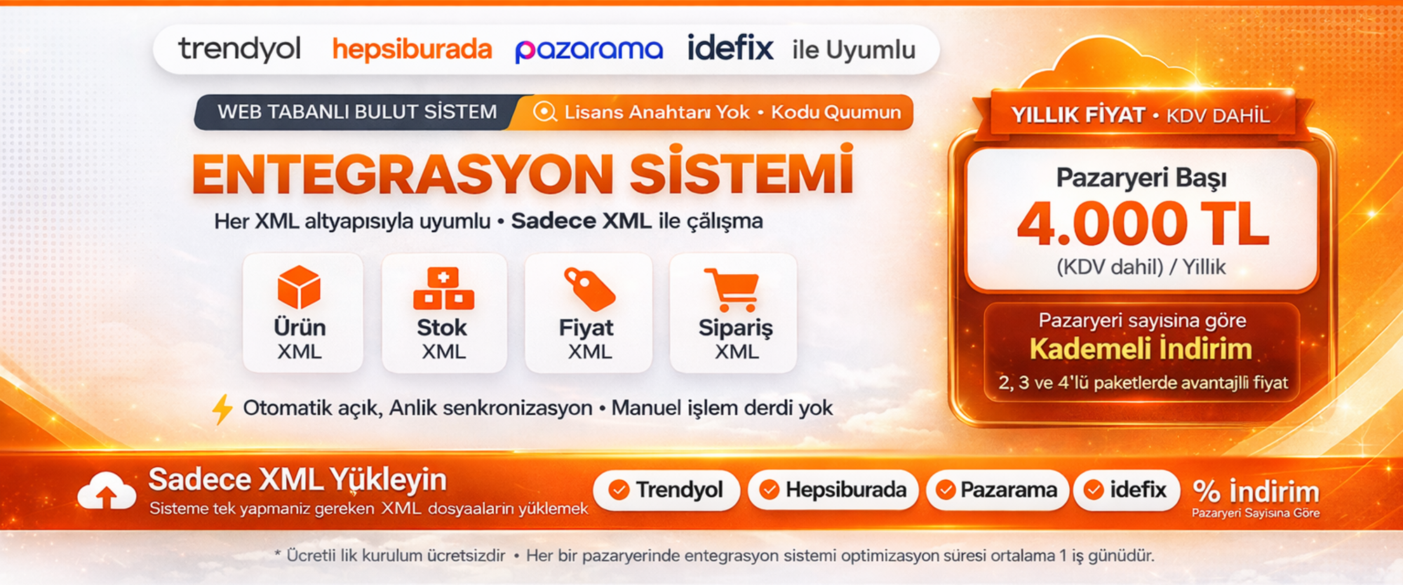 Trendyol, Hepsiburada, N11 ve e-ticaret siteleri için uygun XML entegrasyonu sayesinde ürün, stok ve fiyat bilgileri daha kolay yönetilebilir. Bu yapı, dropshipping tedarikçi arayan girişimciler ve işletmeler için pratik, sürdürülebilir ve ölçeklenebilir bir satış modeli sunar.