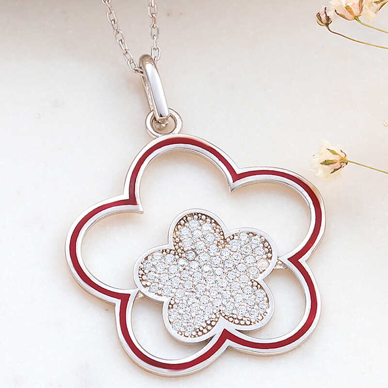 ​925 Ayar Gümüş Çiçek Desenli Kadın Kolye T8205