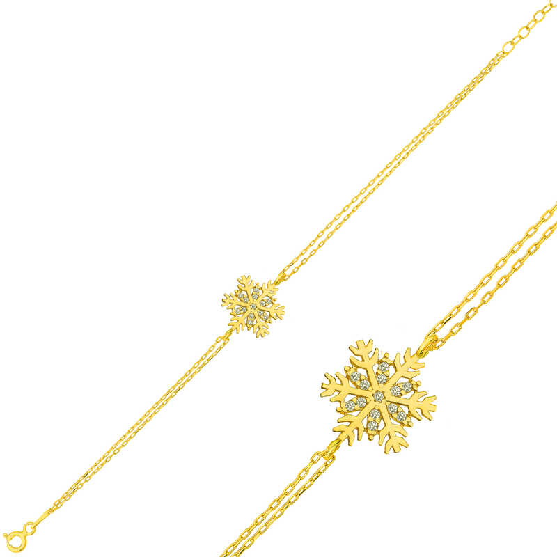 Gümüş Gold Kar Tanesi Bayan Bileklik