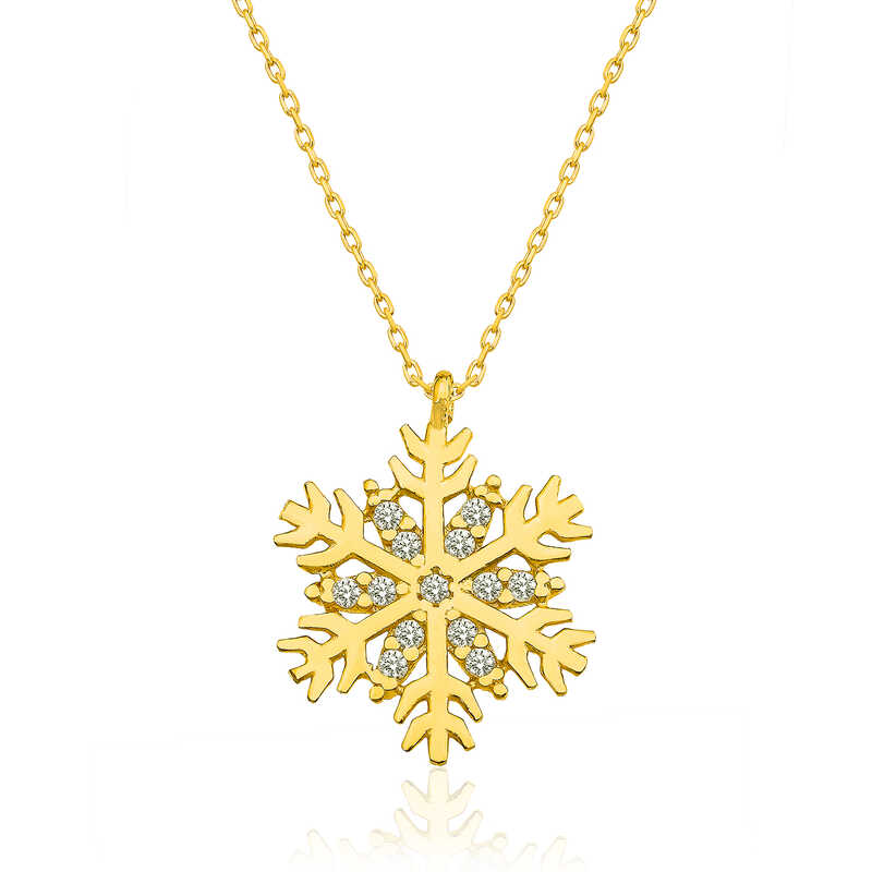 Kadınların ışıltısı, berraklığı kar tanesine benzetilip özel olarak tasarlanmıştır. Kar tanesinin asilliği her dönemde dikkat çekmeyi başarmıştır. Bunun yanında insanların tıpkı kar taneleri gibi birbirlerine zarar vermeden de mutlu bir şekilde yaşayabileceklerini sembolize etmektedir. Bu şık kolye; doğum günü hediyesi, sevgililer günü hediyesi veya annelere hediye olarak özel günlerde tercih edilebilecek mükemmel bir seçenektir. Kolye, 925 ayar gümüşten imal edilmiştir. Gümüş üzerine altın kaplama yapılmıştır. Altın kaplama yapılan ürünler parlaklığını uzun süre muhafaza eder, gümüşü sarı renge dönüştürür ve oksitlenmesi gecikir. Tüm gümüş kolyelerde olduğu gibi bu gümüş gold kar tanesi kolye de tamamı el emeği ile üretilmiştir. Gümüş ve değerli taşlar nedeniyle belirtilen ortalama ürün ağırlığında ± %10 sapma olabilmektedir.