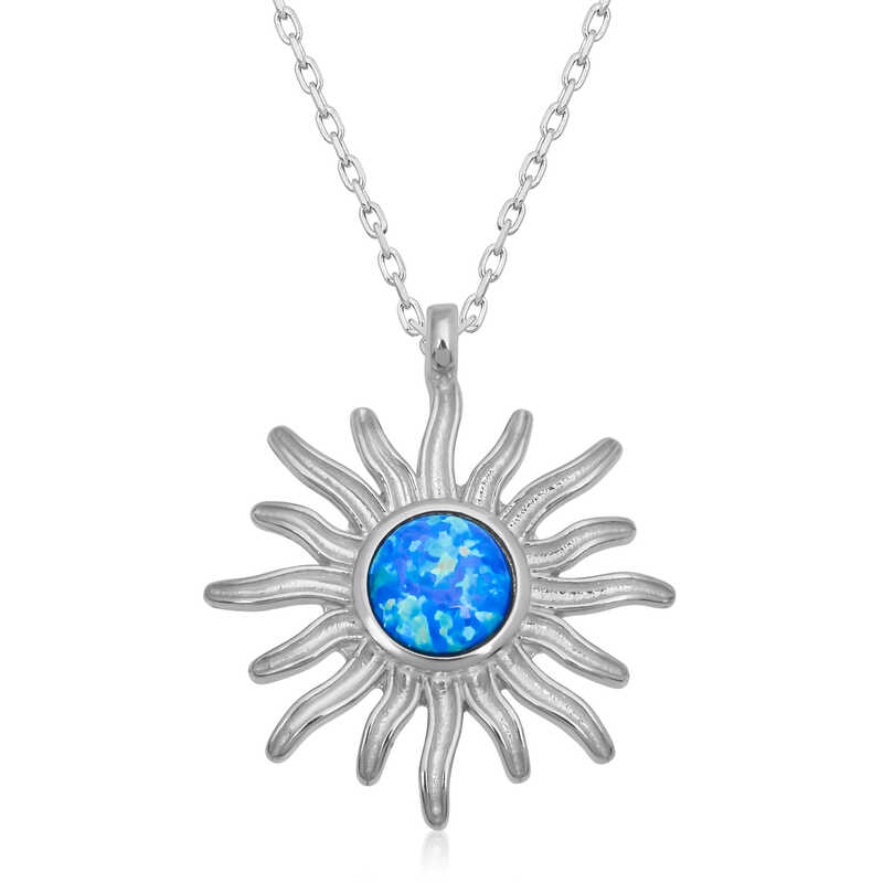 Gümüş Mavi Opal Taşlı Güneş Kadın Kolye