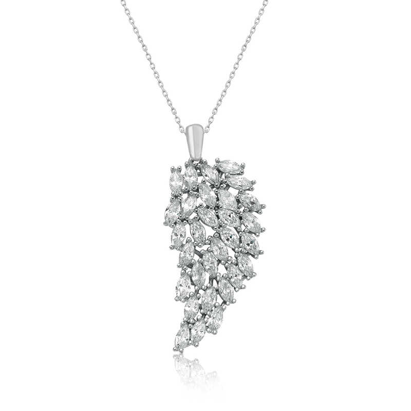 Zirkon taşlarla kaplı ışıl ışıl melek kanadı gümüş kolye ile kanatsız meleğinize tek eksiğini verip, onu sevindirebilirsiniz. "Benim sevgilim bir melek" diyorsanız, melek kanadı kolye tam da sevgilinize göre… Melek kanadı gümüş kolye, hayatınızın aşkı için uygun bir hediye olduğu kadar, anneniz ya da kız kardeşiniz için de son derece uygundur. Hayatınız da değer verdiğiniz mutlu etmek istediğiniz sevdiklerinizi meleklere layık bir hediye ile sevindirin. 925 ayar gümüşten imal edilmiştir. Gümüş üzerine rodyum kaplama yapılmıştır. Rodyum kaplama yapılan ürünler parlaklığını uzun süre muhafaza eder, oksitlenmesi gecikir. Gümüş melek kanadı kolye üzerinde bulunan taşlar zirkondur. Tüm kolye modellerimizin tamamı el emeği ile üretilmiştir. Gümüş ve değerli taşlar nedeniyle belirtilen ortalama ürün ağırlığında ± %10 sapma olabilmektedir.