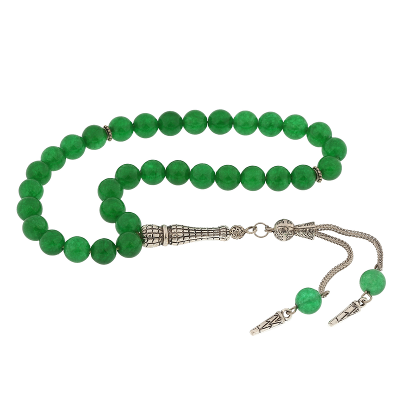 ​Doğaltaş Metal Püsküllü Yeşil Yeşim Taşı Tesbih