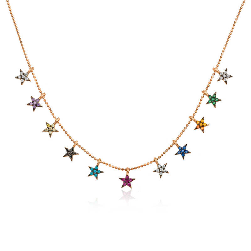 Gümüş Rose Renkli Yıldızlar Bayan Kolye