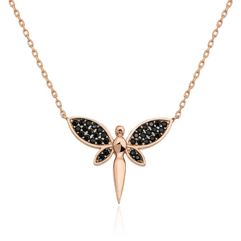 Gümüş Rose Siyah Yusufçuk Bayan Kolye