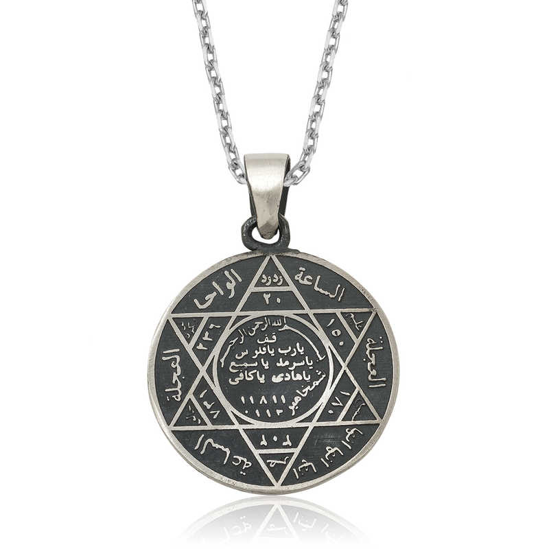 Davud yıldızı veya altı köşeli yıldız olarak da bilinen Süleyman mührünün hikmetlerini saymakla bitiremeyiz. Mührü yanında taşıyan kişiye büyü etki etmez. Kişiyi her türlü nazardan korunur. Taşıyan kişiye şeytan ve türevleri etki etmemesi gibi pek çok şifası vardır. Kolye 925 ayar gümüşten imal edilmiştir. Gümüş üzerine oksit kaplama yapılmıştır. Oksit kaplama yapılan gümüş kolyeler parlaklığını uzun süre muhafaza eder. Tüm gümüş bayan kolyelerde olduğu gibi gümüş Süleyman mührü kolye de el emeği ile üretilmiştir. Gümüş ve değerli taşlar nedeniyle belirtilen ortalama ürün ağırlığında ± %10 sapma olabilmektedir.