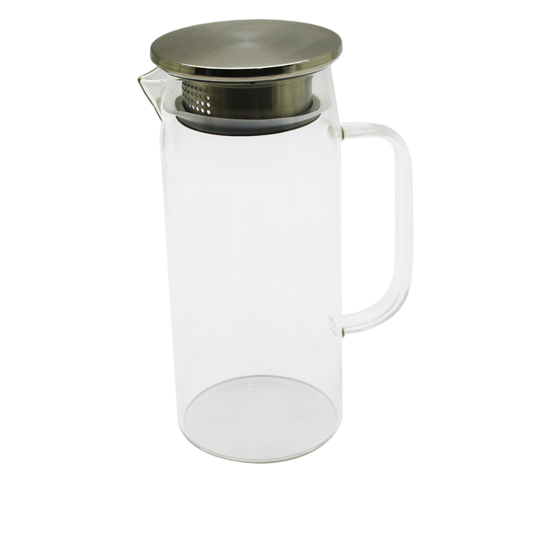 1.2Lt Yuvarlak Cam Sürahi̇ Süzgeçli̇ Metal Kapak Borosi̇li̇kat Termi̇si̇l Isıya Dayanaklı