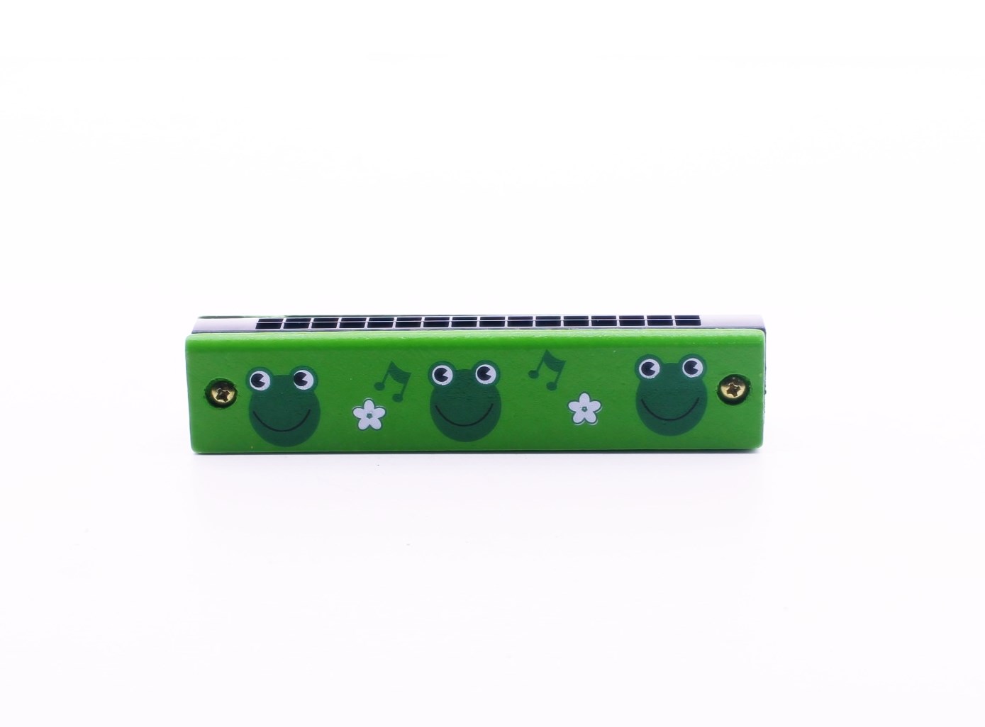 1 Adet Ahşap Mızıka 16 Delikli Çift Sıralı Yeşil Desenli Çocuk Mızıka