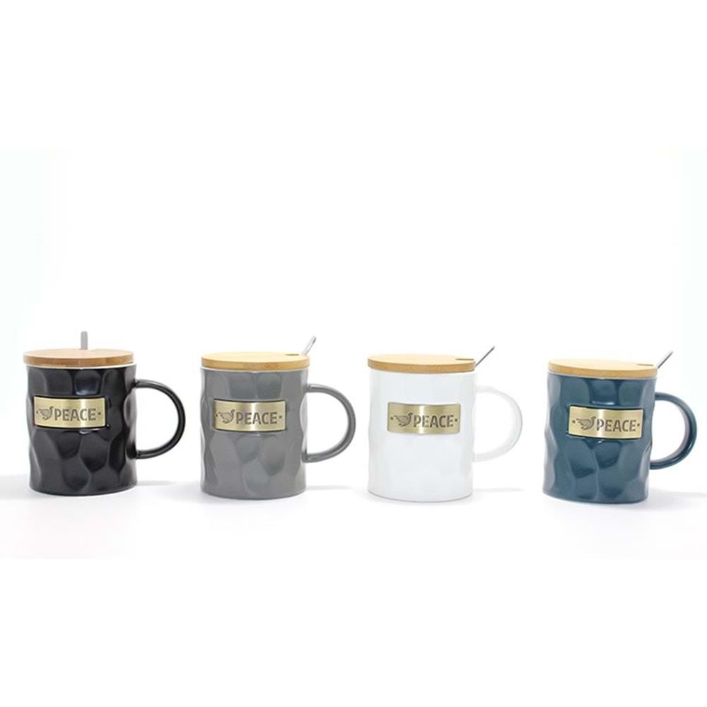 1 Adet Bambu Kapaklı Porselen Kupa Bardak Alk1261