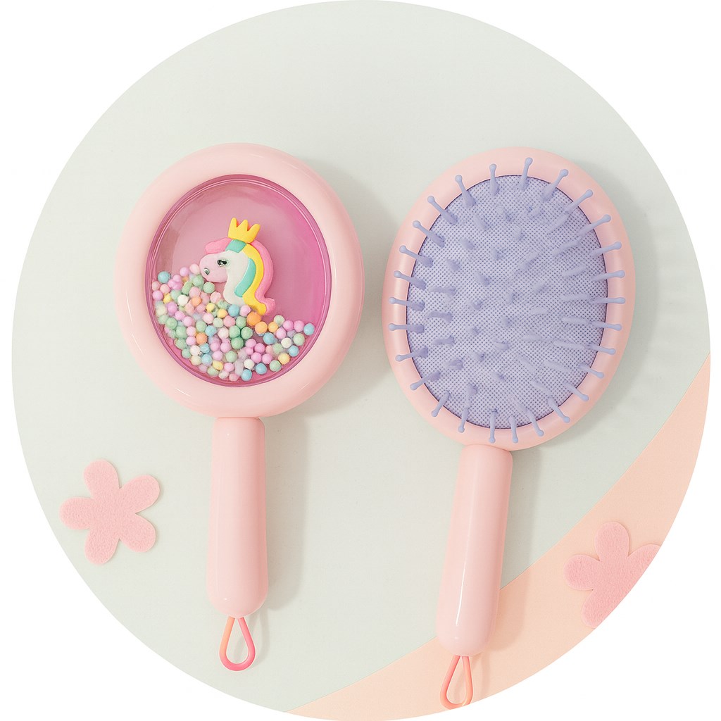 Çocukların saç bakımını eğlenceli hale getiren unicorn desenli boncuklu saç tarağı, pastel pembe rengi ve sevimli tasarımıyla öne çıkıyor. Ergonomik yapısı sayesinde çocukların saçını kolayca tararken saç derisine nazikçe masaj yapar.