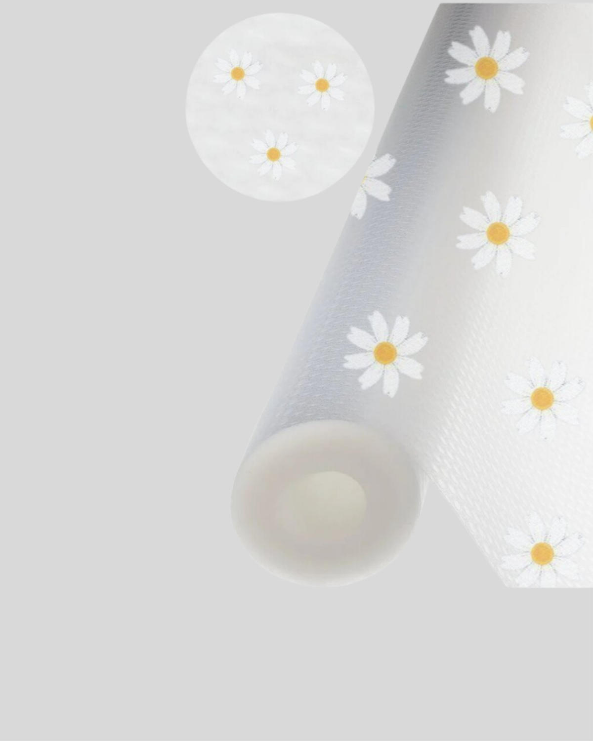 Çekmece ve dolap içlerinde düzeni sağlamak, yüzeyleri korumak ve eşyalarınızı güvenle saklamak için tasarlanan bu papatya desenli kaymaz çekmece içi mat, pratik kullanımı ve dekoratif görünümüyle öne çıkar. Ürün 10 metre uzunluğa sahiptir ve tek parça halinde gönderilir. Bu uzunluk sayesinde geniş çekmecelerde kesintisiz kullanım sağlar; aynı zamanda ihtiyaca göre kesilerek birden fazla çekmecede rahatlıkla kullanılabilir.