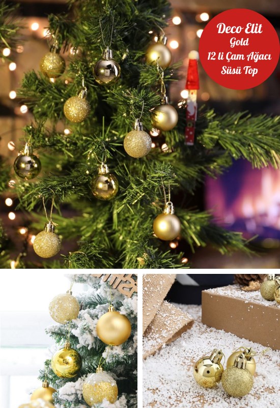 Paket içeriği: 12 adet altın renkli yılbaşı süs topu