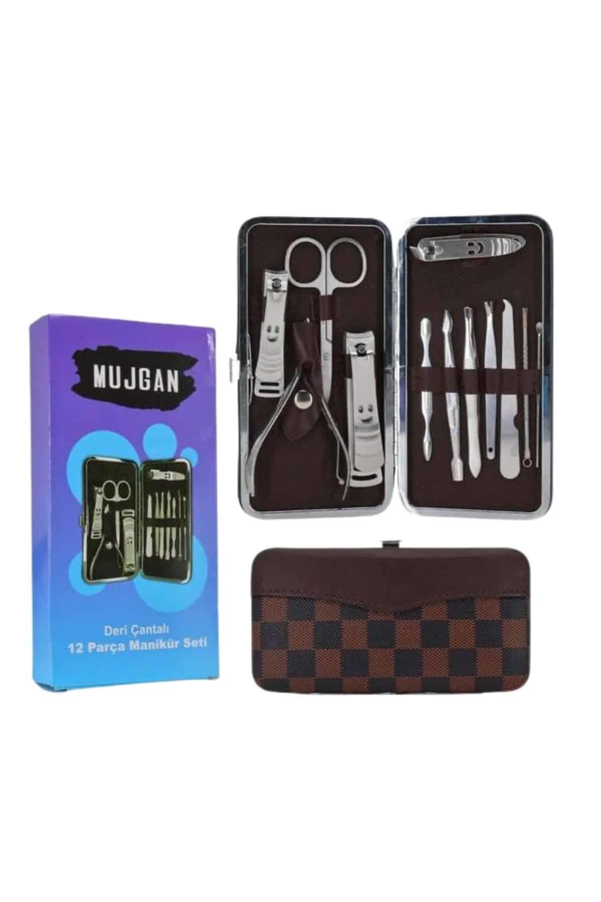 12 Parça Manikür Pedikür Seti Özel Deri Çanta El Ayak Bakımı Akne ve Sivilce Temizleme