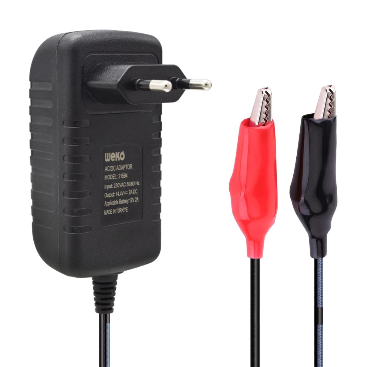 14.4 Volt - 2 Amper Kırmızı*Yeşil Ledli Yerli Üretim Krokodil Uçlu Akü Şarj Cihazı (Out :12V-2A)