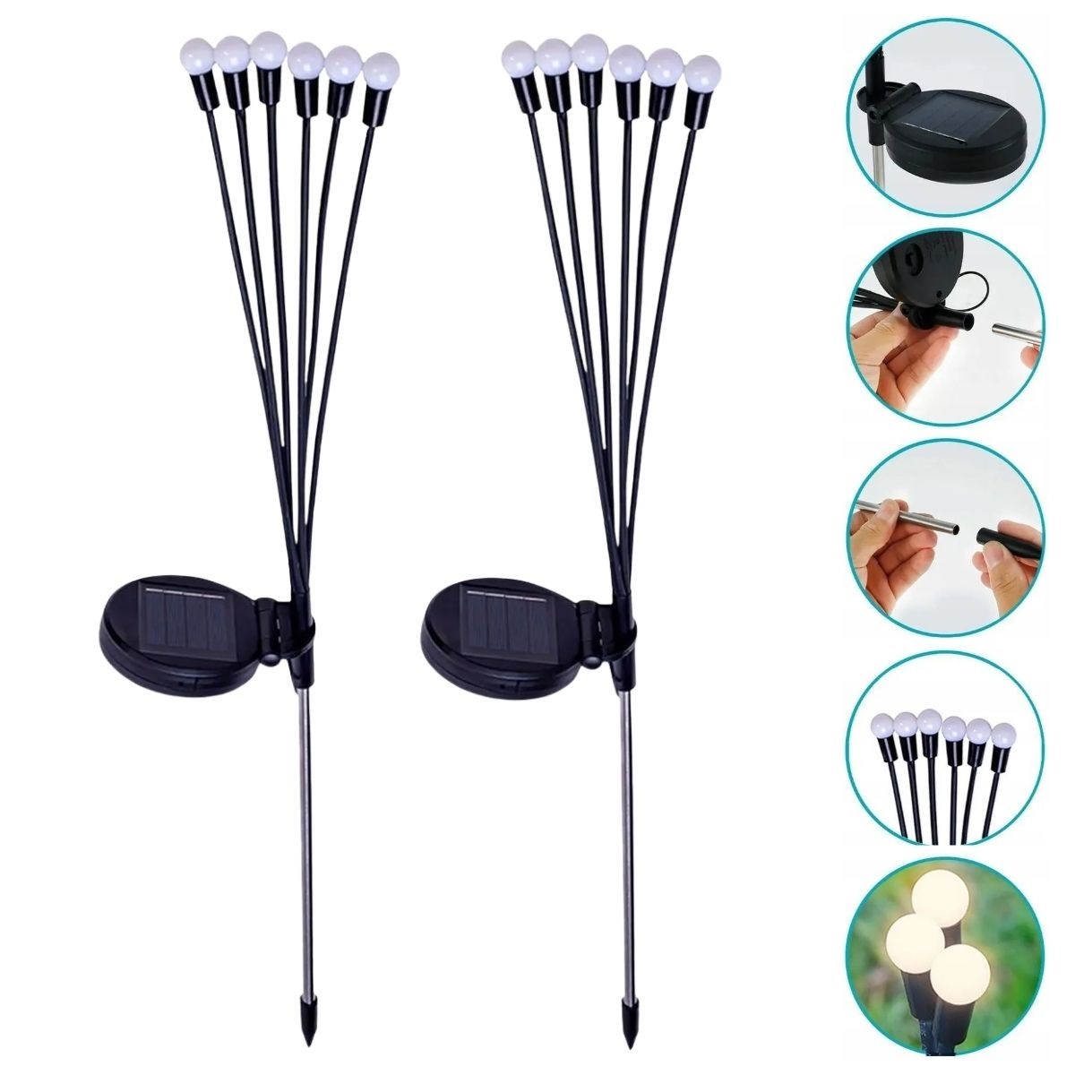 Gündüz güneş ışığı ile şarj olan dahili bataryası sayesinde gece boyunca otomatik olarak yanar. Elektrik kablosu, priz veya ek kurulum gerektirmez; çevre dostu ve ekonomik kullanım sunar.