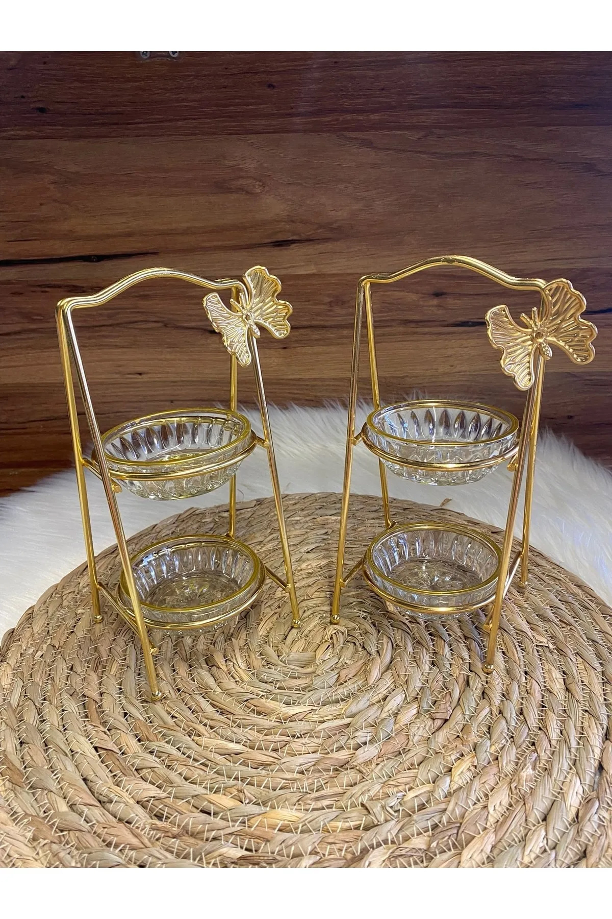 2 Katlı Gold Standlı Lokumluk Çerezlik 1 Adet 20cm
