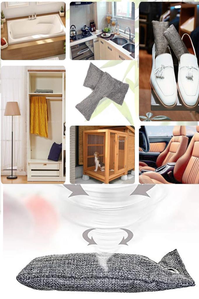 Güçlü aktif kömür, güzel dikişli bir keten torba içinde mühürlenmiştir ve çevreyi kimyasal ile doldurmadan ayakkabılarınızdan, ayakkabı dolabınızdan, spor çantanızdan, arabanızdan, buzdolabınızdan, havlu dolabınızdan ve evcil hayvan kumu kutusu alanlarından gelen kokuları ortadan kaldırır