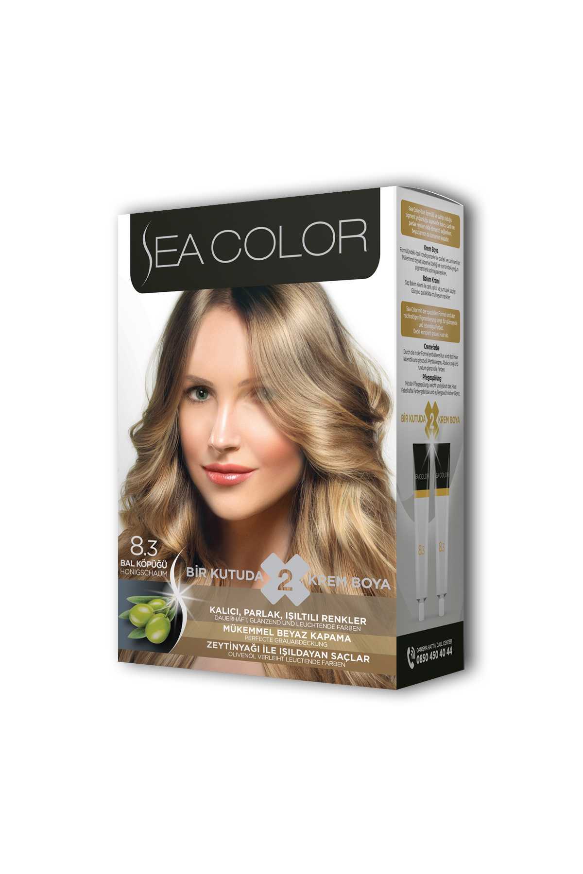 Sea Color 2 tüp Krem Saç Boyası Seti Bal Köpüğü No:8.3