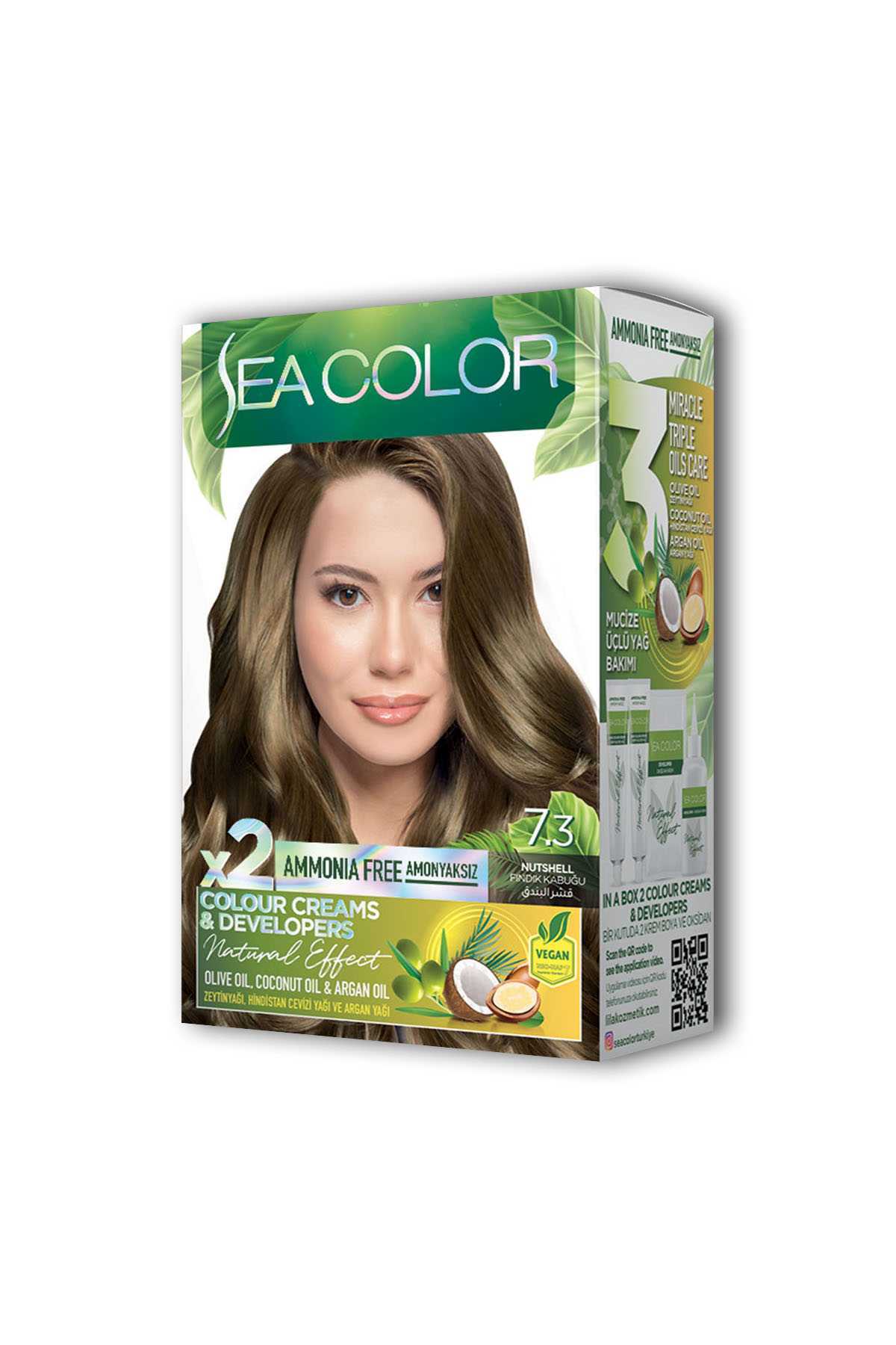 Sea Color 2 tüp Krem Saç Boyası Seti Fındık Kabuğu No:7.3