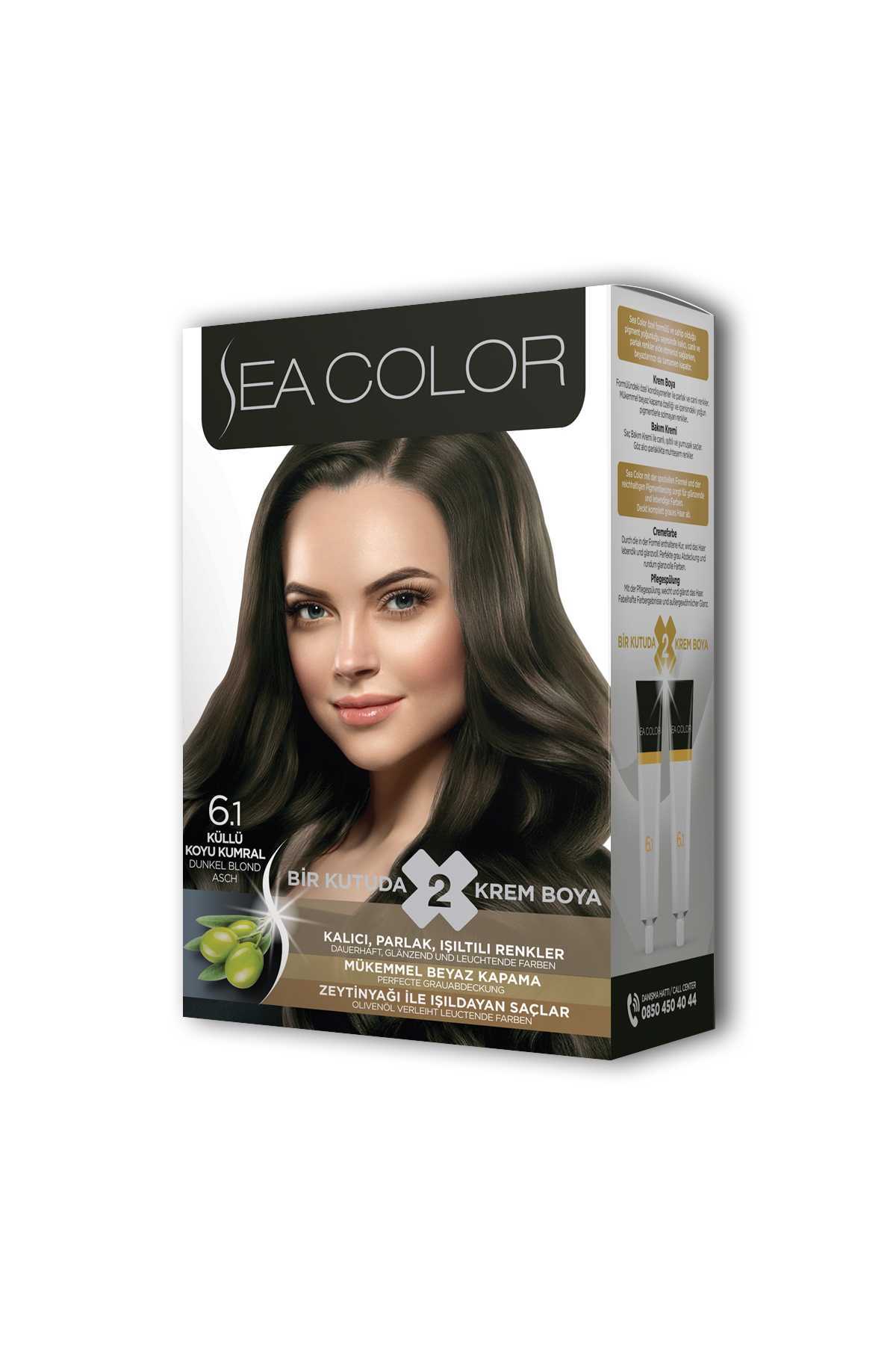 Sea Color 2 tüp Krem Saç Boyası Seti Küllü Koyu Kumral No:6.1
