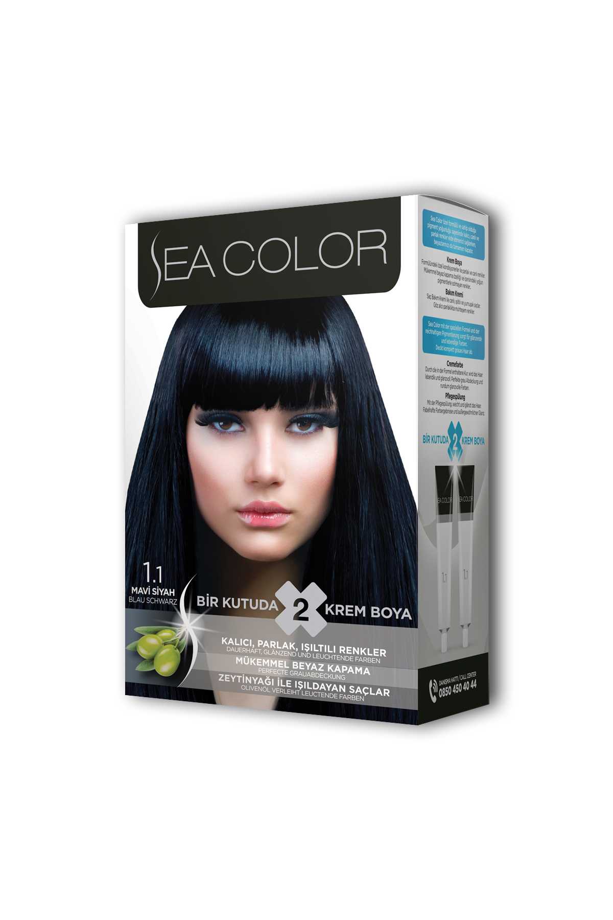 Sea Color 2 tüp Krem Saç Boyası Seti Mavi Siyah No:1.1