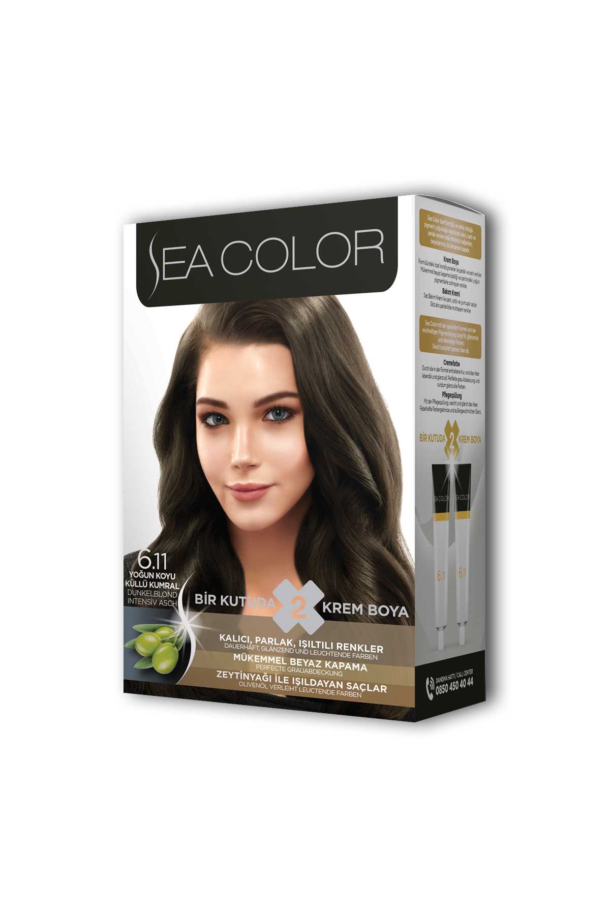 Sea Color 2 tüp Krem Saç Boyası Seti Yoğun Koyu Küllü Kumral No:6.11