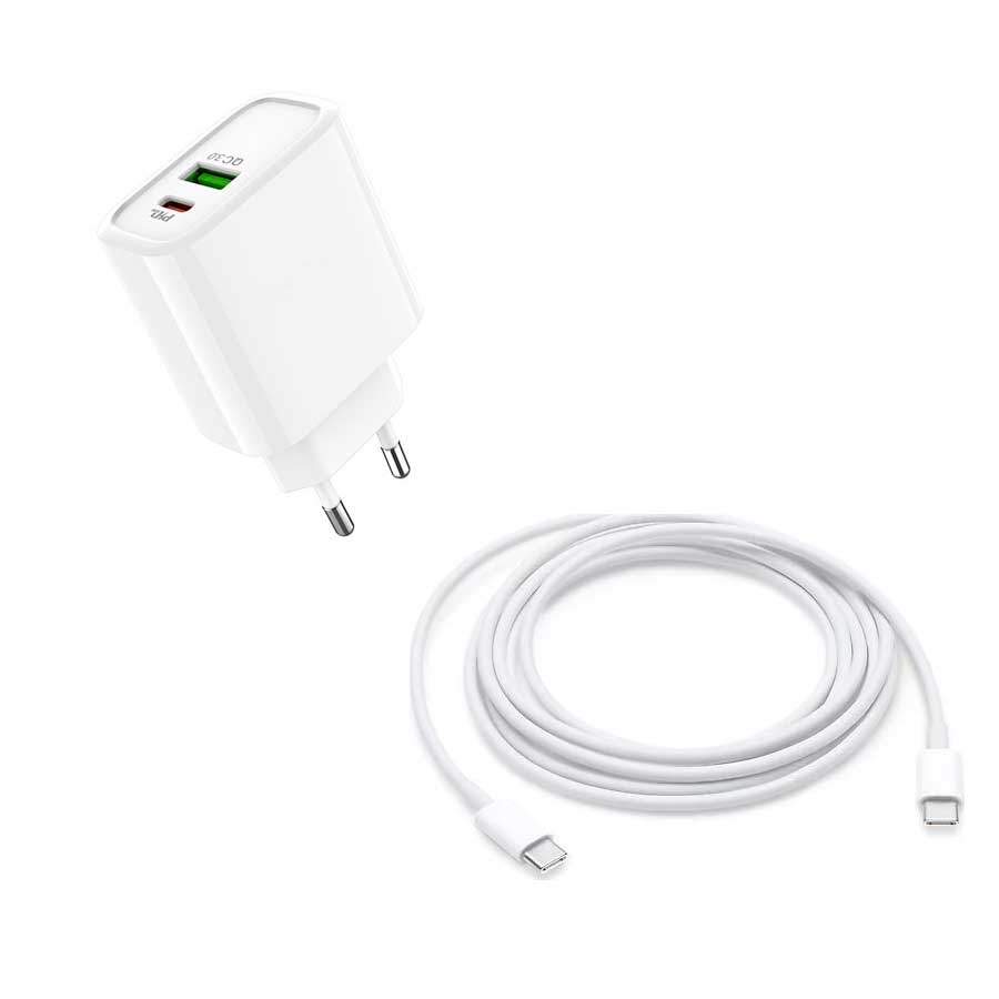 20 Watt 1x USB-A 1x USB-C 1 Mt Type-C to Type-C Kablo Şarj Aleti + Kablo AC96