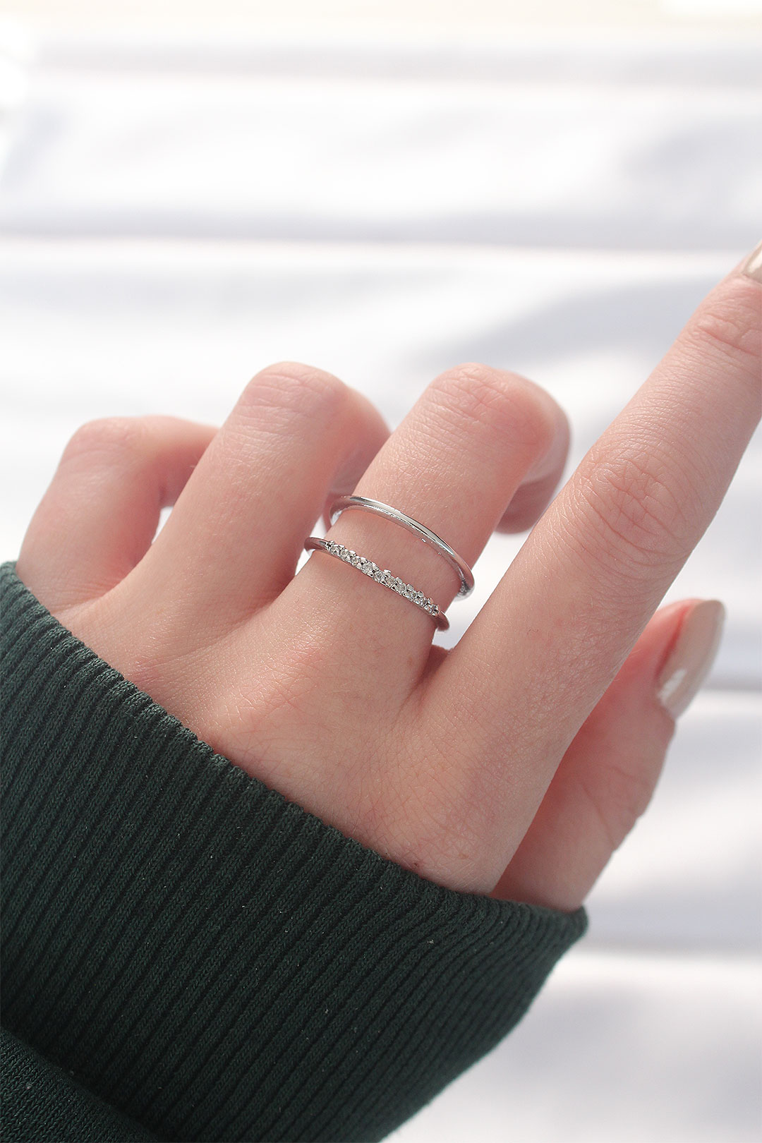 2li Görünümlü Su Yolu Tasarımlı Silver Renk Ayarlanabilir Yüzük - TJ-BYK3135