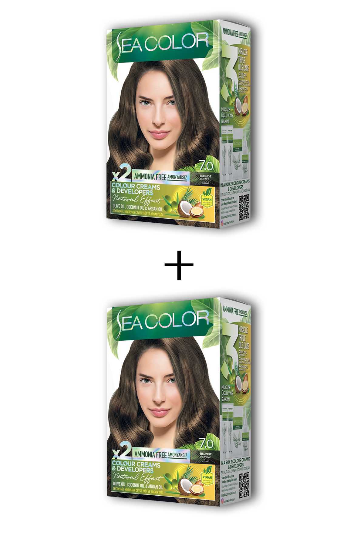 Sea Color 2X2 tüp Krem Saç Boyası Seti Kumral No:7.0