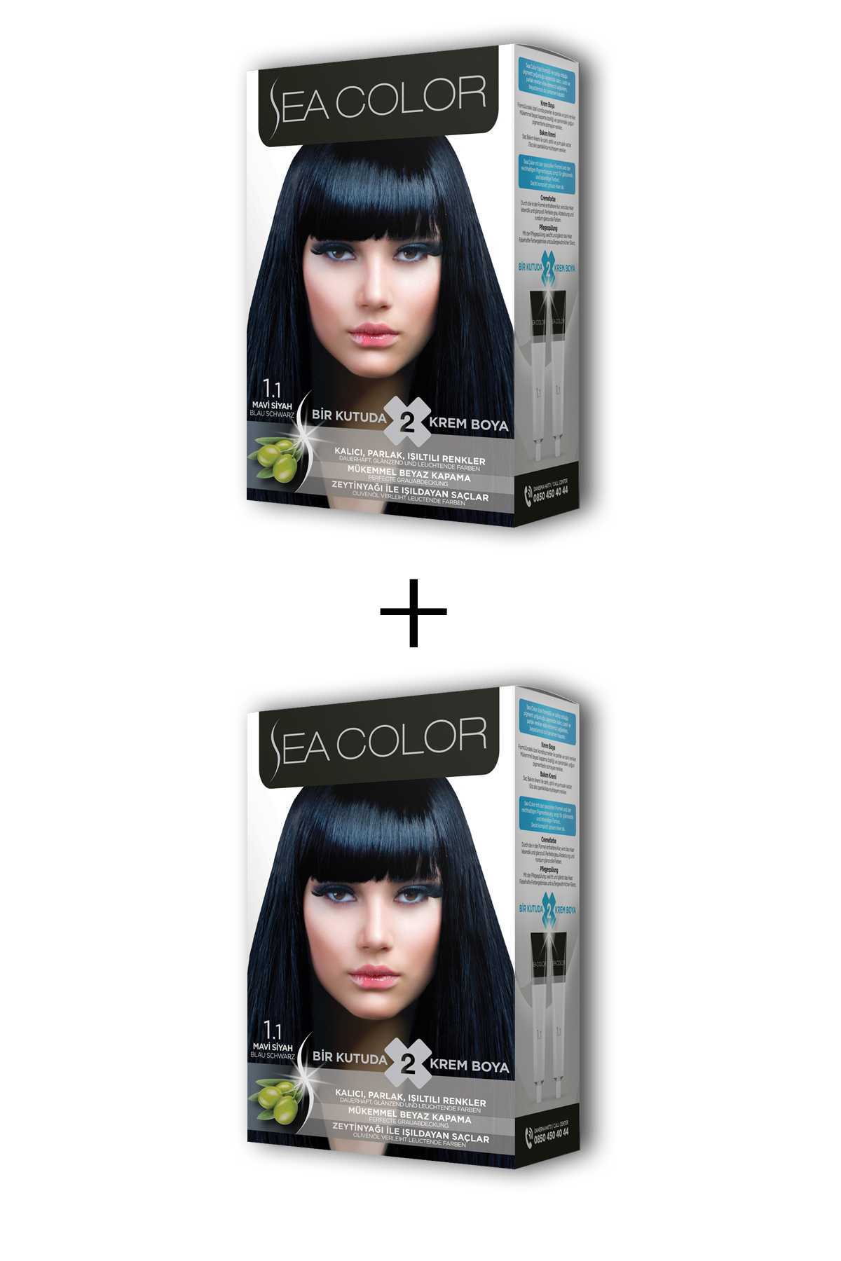 Sea Color 2X2 tüp Krem Saç Boyası Seti Mavi Siyah No:1.1