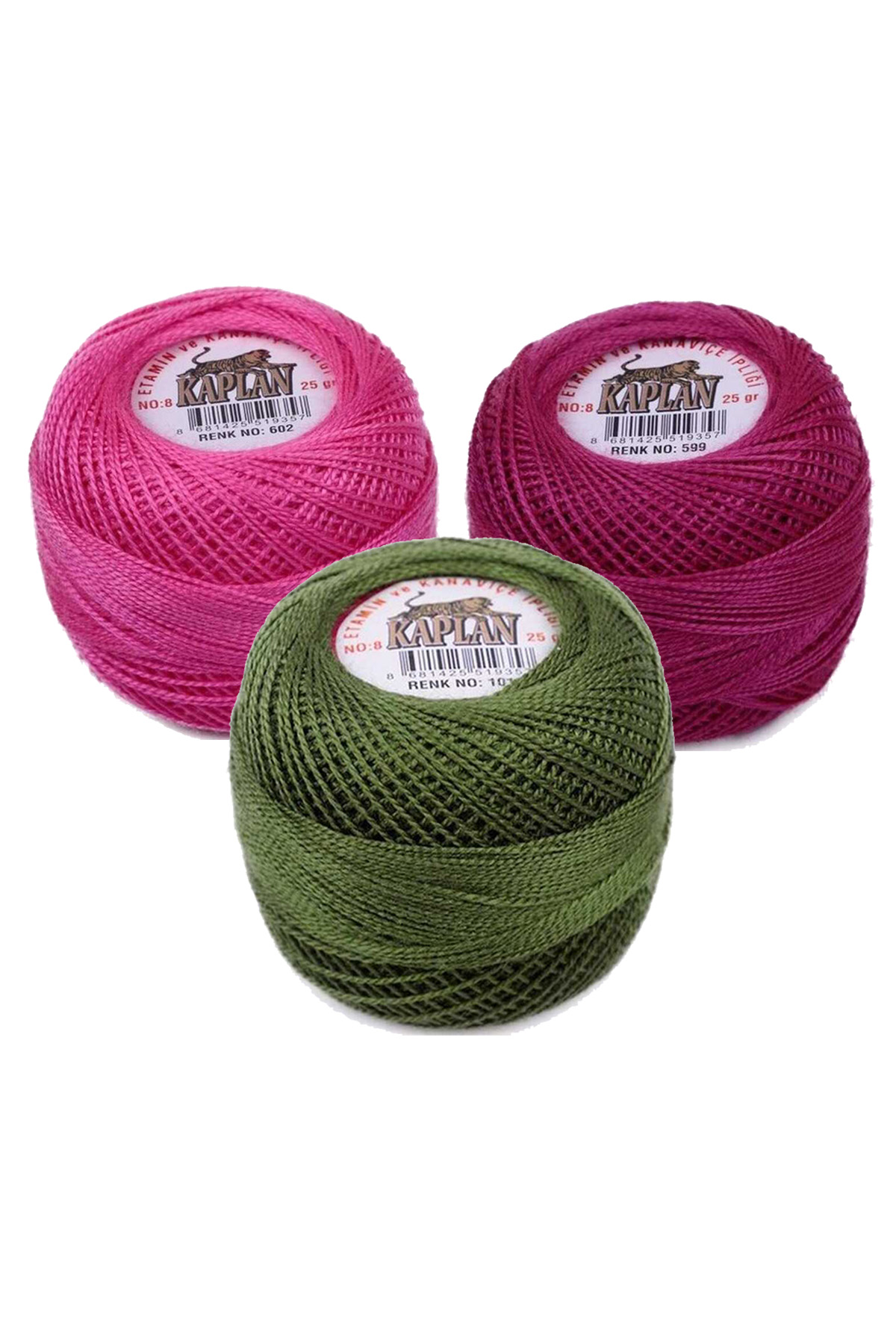 | 3 Adet Kaplan Etamin Ve Kanaviçe İpi 8 No Kod/Renk: 602 - 599 - 1015 - Ryl |