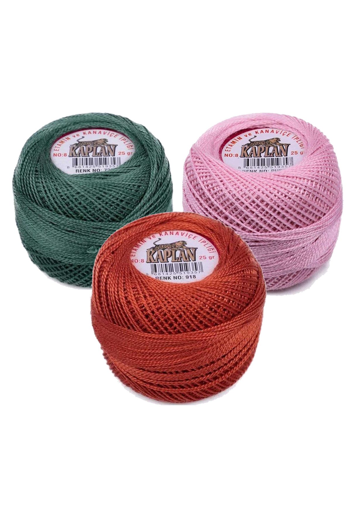 | 3 Adet Kaplan Etamin Ve Kanaviçe İpi 8 No Kod/Renk: 726 - PUDRA - 918 - Ryl |
