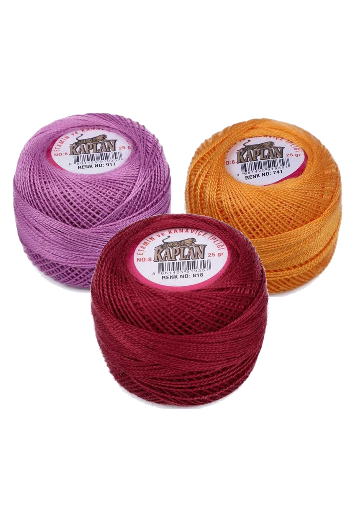 | 3 Adet Kaplan Etamin Ve Kanaviçe İpi 8 No Kod/Renk: 917 - 741 - 818 - Ryl |