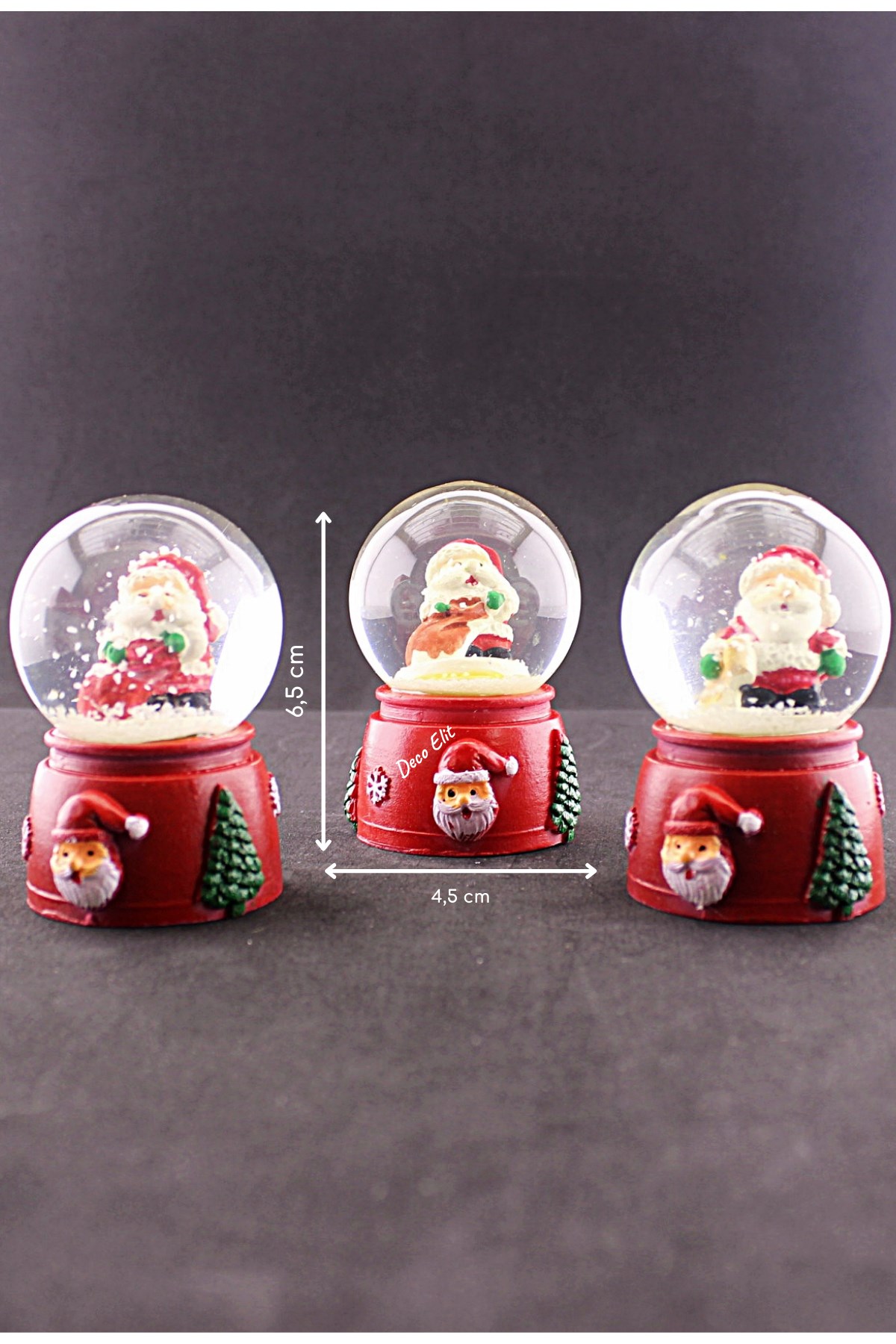 3 Adet Yeni Yıl Noel Baba Temalı Karışık Mini Boy Işıklı Kar Küresi 6,5 cm