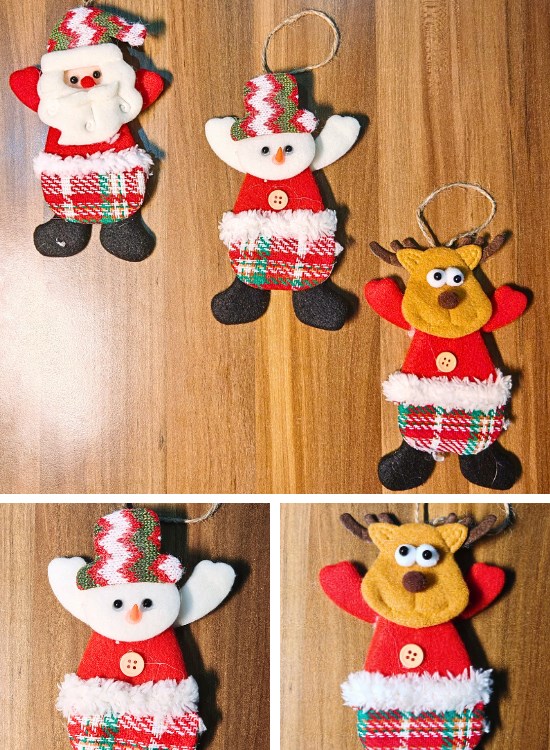 3 Adet Yılbaşı Çam Ağacı Süsü Peluş Tekstil Örme Orta Boy 17 cm x 11 cm