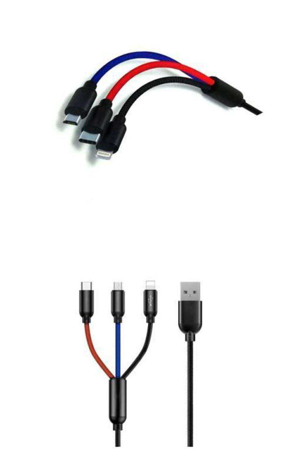 Ürün İsmi : 3 in 1 Çoklu Hızlı Şarj Kablosu Type-C Mikro İphone 1.2 Metre 3A TYPE-C/Micro/İphone Lightning
