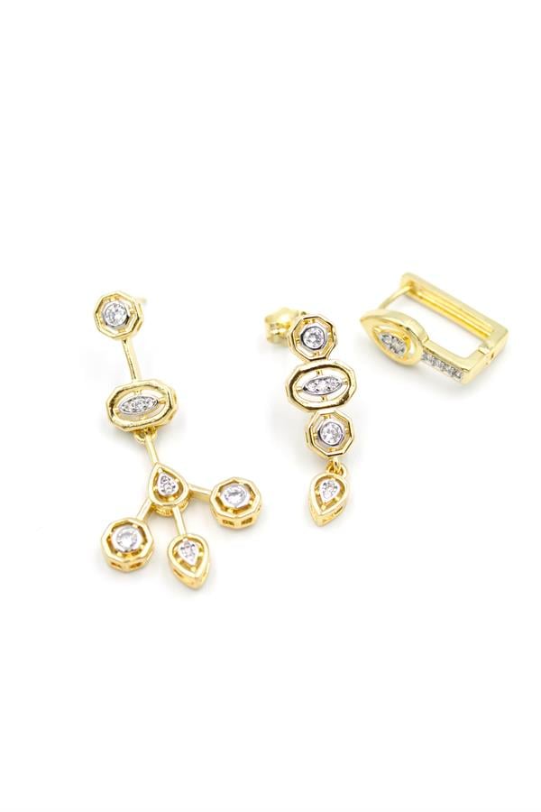 3'lü Element Küpe - Altın