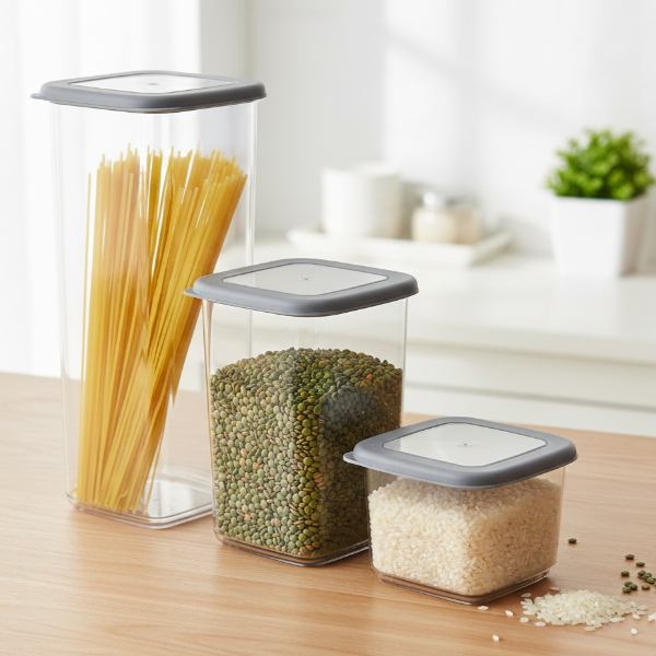 Kare Erzak Seti, mutfakta düzen ve pratik saklama alanı oluşturmak isteyenler için tasarlanmış 3’lü saklama kabı setidir. Farklı yükseklik ve hacim seçeneklerine sahip kaplar sayesinde bakliyat, makarna, kuruyemiş ve benzeri gıdaları düzenli şekilde muhafaza edebilirsiniz. Şeffaf gövde yapısı ile içerisindeki ürünü kolayca görmenizi sağlar ve mutfak dolaplarında estetik bir görünüm sunar. Kare formu sayesinde dolap içinde yer tasarrufu sağlar ve üst üste yerleştirmeye uygundur. Sızdırmaz kapak tasarımı ile gıdaların tazeliğini korumaya yardımcı olan bu kare erzak kabı seti, hem ev hem de ofis mutfakları için ideal bir saklama kabı çözümü sunar.
