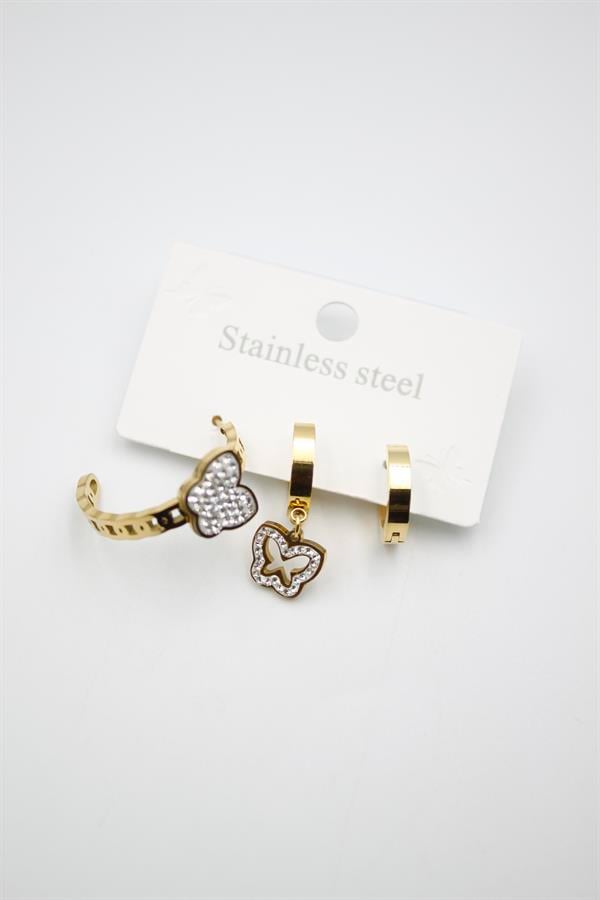 3'lü Kelebek Küpe - Altın