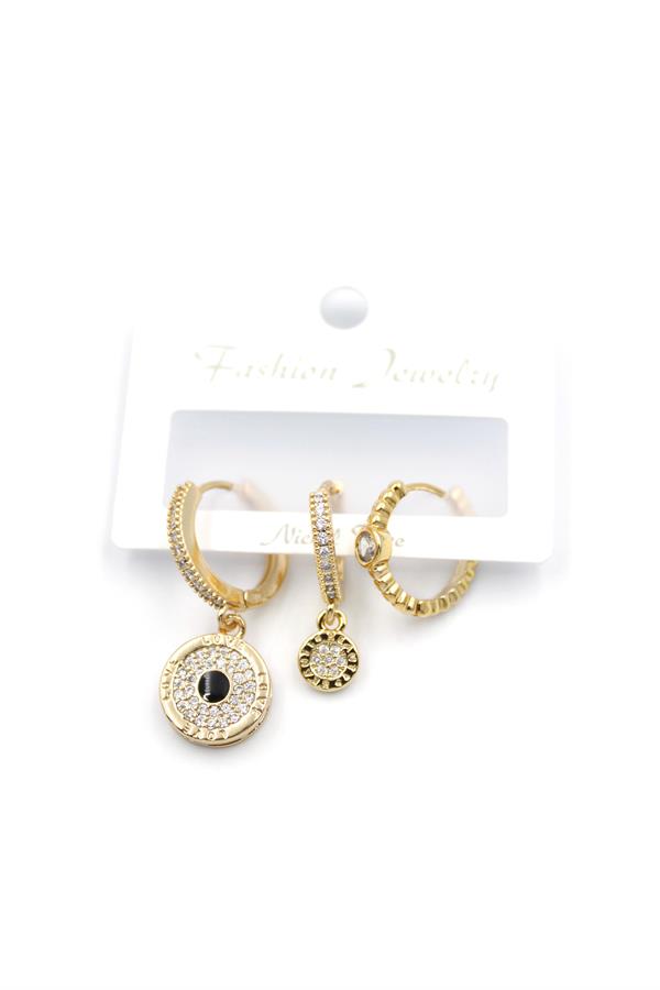 3'lü Nazar Küpe - Altın