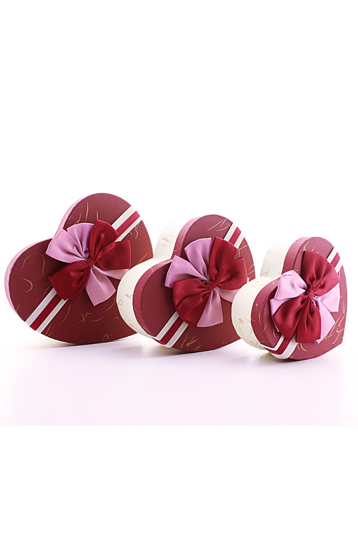 3 Adet kalp şeklinde kurdelalı kutu