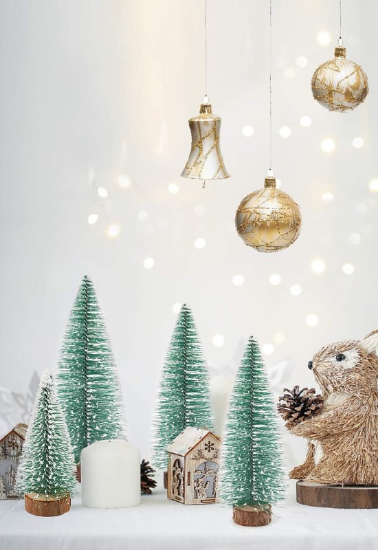 • paket içerisinde 3 adet yeşil renkli yapraklarına kar yağmış nevada ağaç bulunmaktadır.