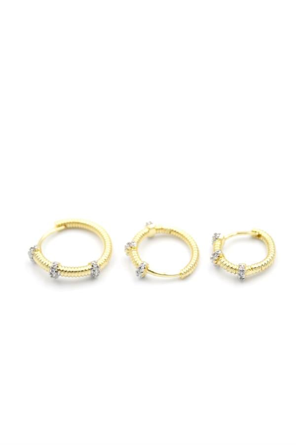 3'lü Taşlı Küpe - Altın