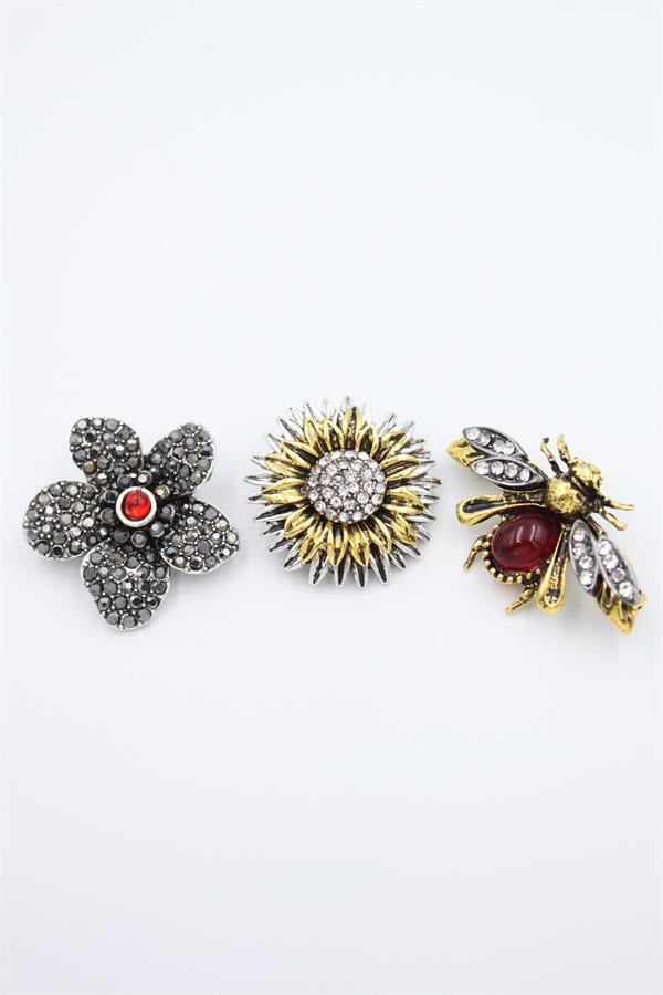 3'lü Zra Broş Seti - ÇOK RENKLİ