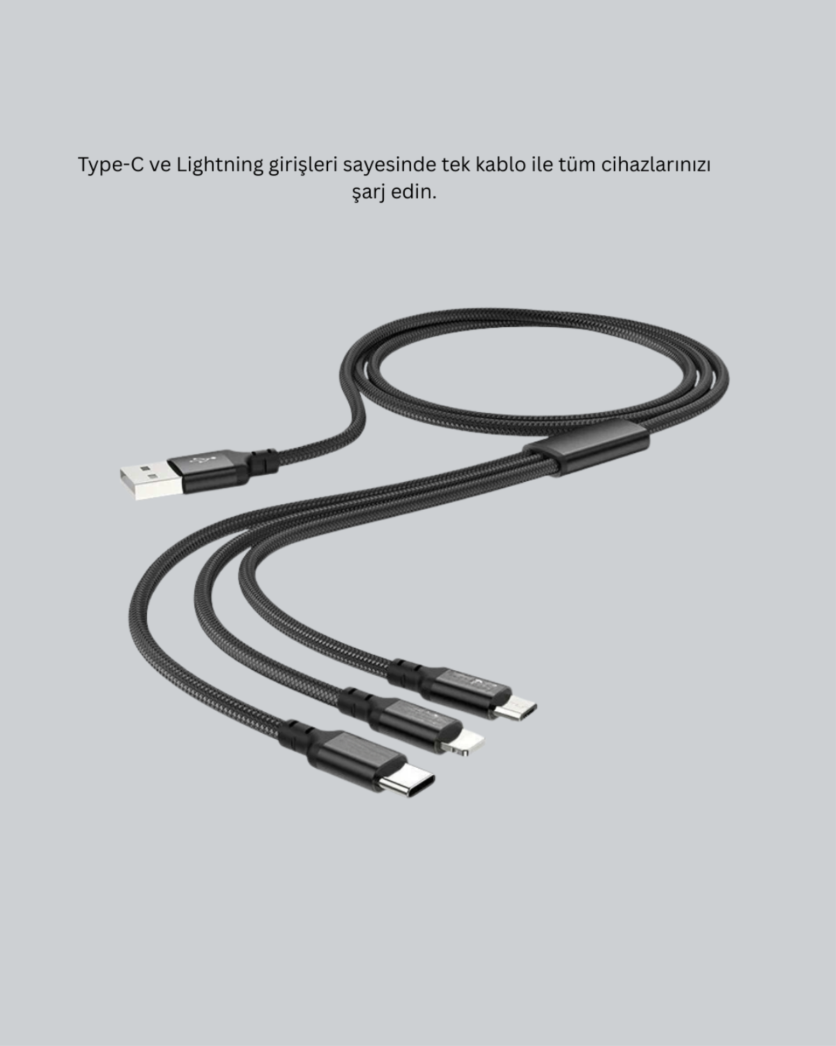 Bu 3’ü 1 arada şarj kablosu yalnızca telefonlar için değil, aynı zamanda tabletler, powerbank’ler, kablosuz kulaklıklar ve Type-C uyumlu diğer elektronik cihazlar için de kullanılabilir. Aynı anda birden fazla cihazı şarj edebilmesi, kalabalık ortamlarda büyük avantaj sağlar. Özellikle aileler, ofis çalışanları ve çoklu cihaz kullanıcıları için mükemmel bir çözümdür. Güvenli, hızlı ve dayanıklı yapısı ile uzun süreli kullanım için idealdir.