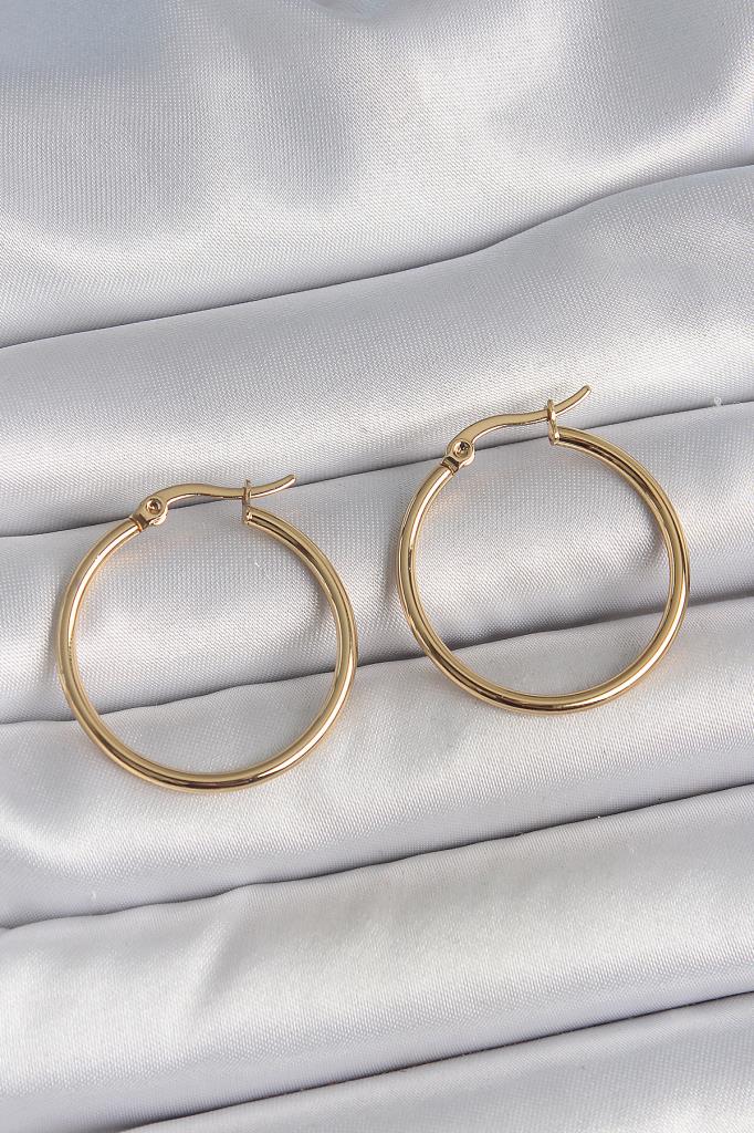 316 Çelik Gold Renk 27 mm Halka Model Kadın Küpe - BKP10508