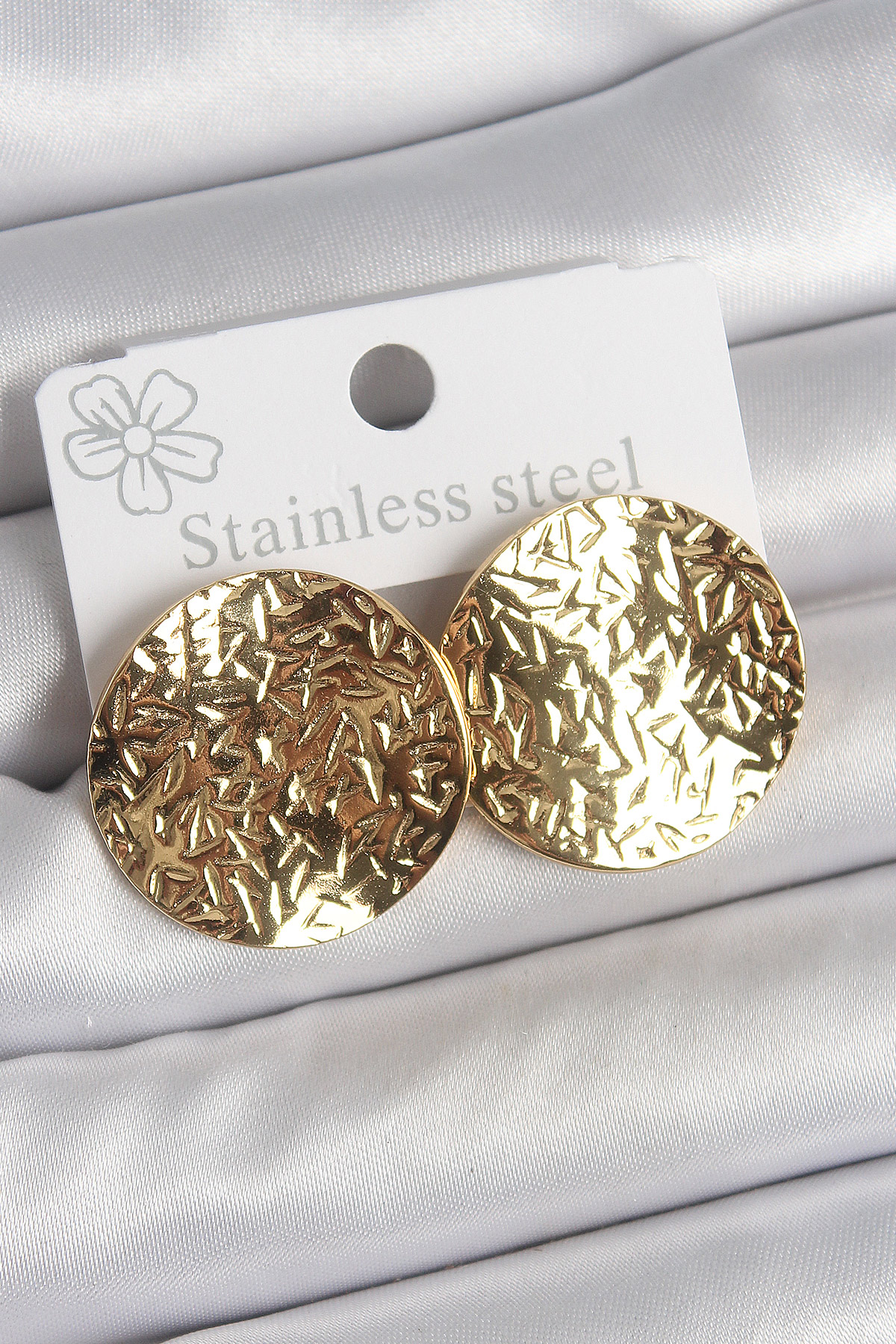 316 Çelik Gold Renk İşlemli Daire Plaka Model Kadın Küpe - TJ-BKP10520
