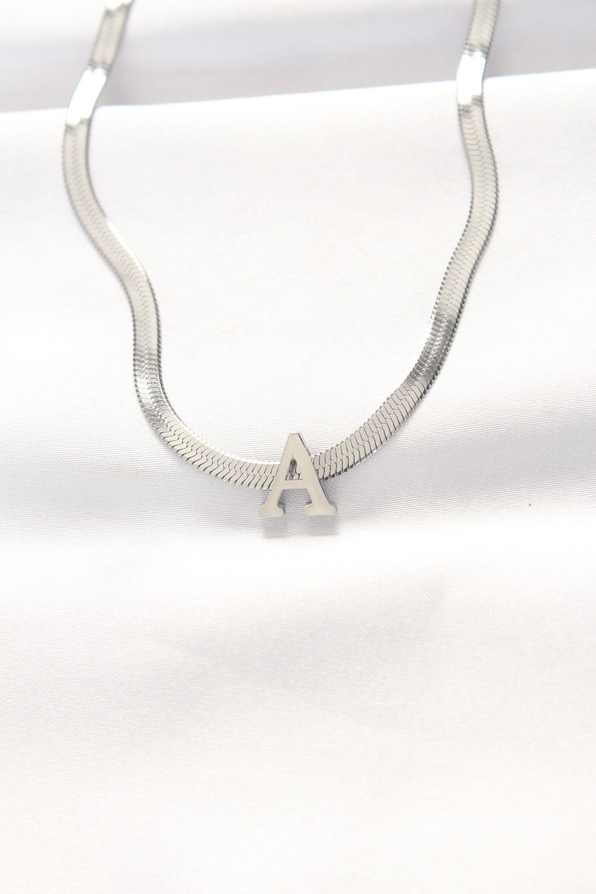 316L Çelik A Harfli Silver Renk İtalyan Zincirli Kolye - TJ-BKO8546