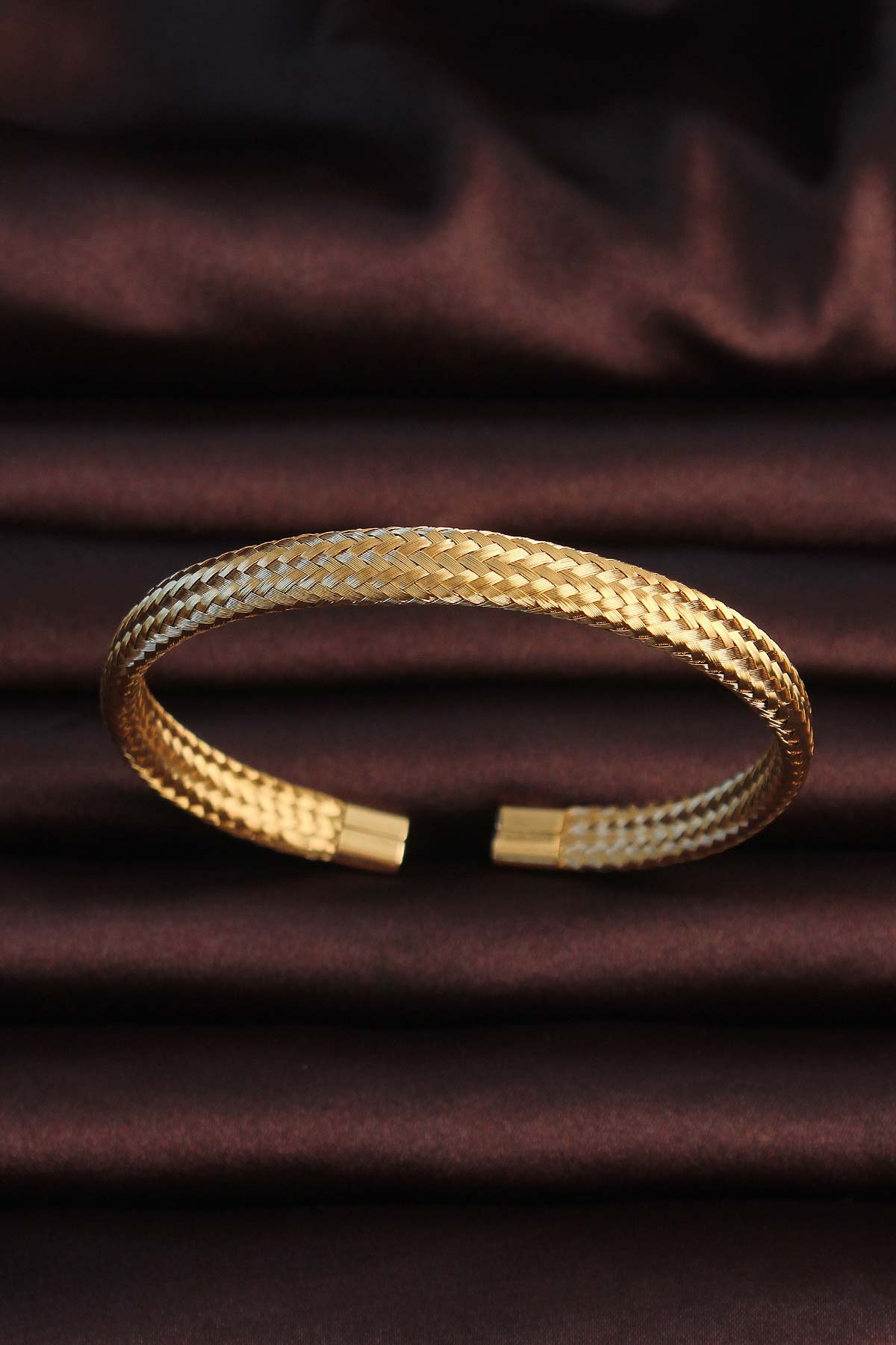 316L Çelik Altın Renk Hasır Görünüm Erkek Bileklik - TJ-EB3675