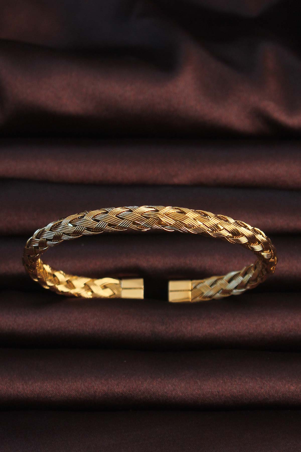 316L Çelik Altın Renk Kalın Yassı Örgü Model Erkek Bileklik - TJ-EB3674